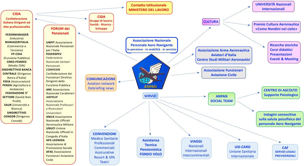 ANPAN - come ASSOCIAZIONE - intende relazionarsi con le attuali realtà del Trasporto Aereo, per creare un proficuo rapporto collaborativo nell’ottica della riscoperta del valore pratico dell’aggregazione e della cultura della solidarietà.